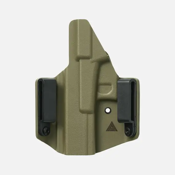 Эта прочная кобура в виде блинчика для Glock 17 предназначена для обеспечьте более дискретный и очень удобный вариант переноски.добный вариант переноски. Все возможные излишки материала были обрезаны, чтобы снизить видимость и сделать максимально комфортными такие ситуации, как длительное сидение в автомобиле. Форма чехла и его края стали более выразительными. Кобура изготовлена из натурального материала Kydex®, поэтому она не только долговечна, но и надежно удержит ваш пистолет даже при динамичных движениях. Кобура Zero Cant позволяет установить пистолет вертикально на вашем снаряжении. Мы решили заменить дюймовые винты на метрические.Кобура OWB ZERO CANT NO LIGHT совместима со всеми поколениями пистолетов Glock, включая пистолеты с оптикой и нарезными стволами.