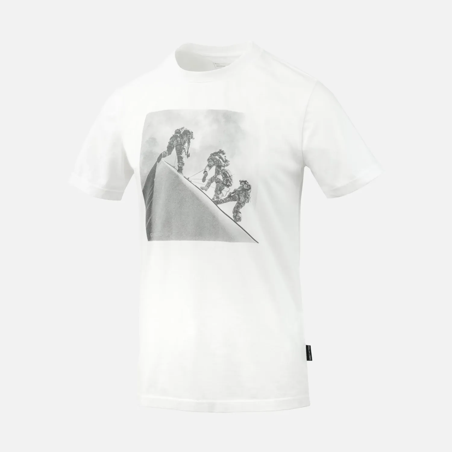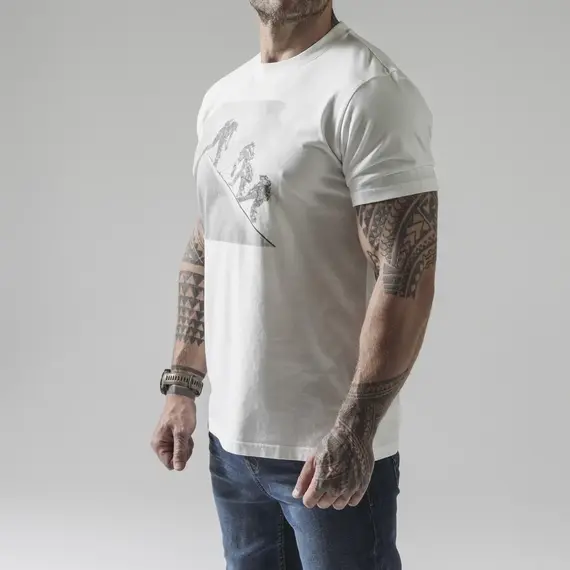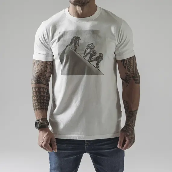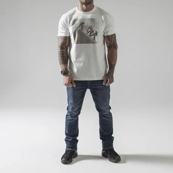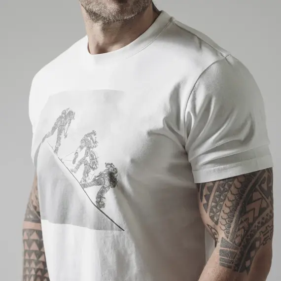 Футболка с силуэтами операторов, спускающихся по канатам на стене здания.