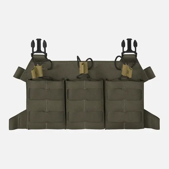 Легкий скелетированный клапан, предназначенный для переноски трех магазинов SR (.308WIN). Покрыт модульной системой лазерной резки, совместимой с MOLLE/PALS. Клапан идеально сочетается с патронником BEARCAT® и системой SPITFIRE®. Магазины крепятся сверху эластичным шнуром с защелками Hypalon®. Благодаря дополнительному интерфейсу его можно превратить в компактное устройство для переноски на груди.