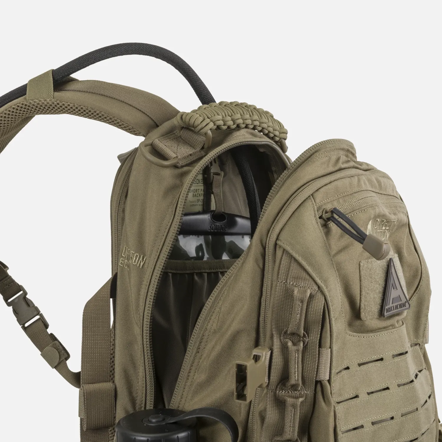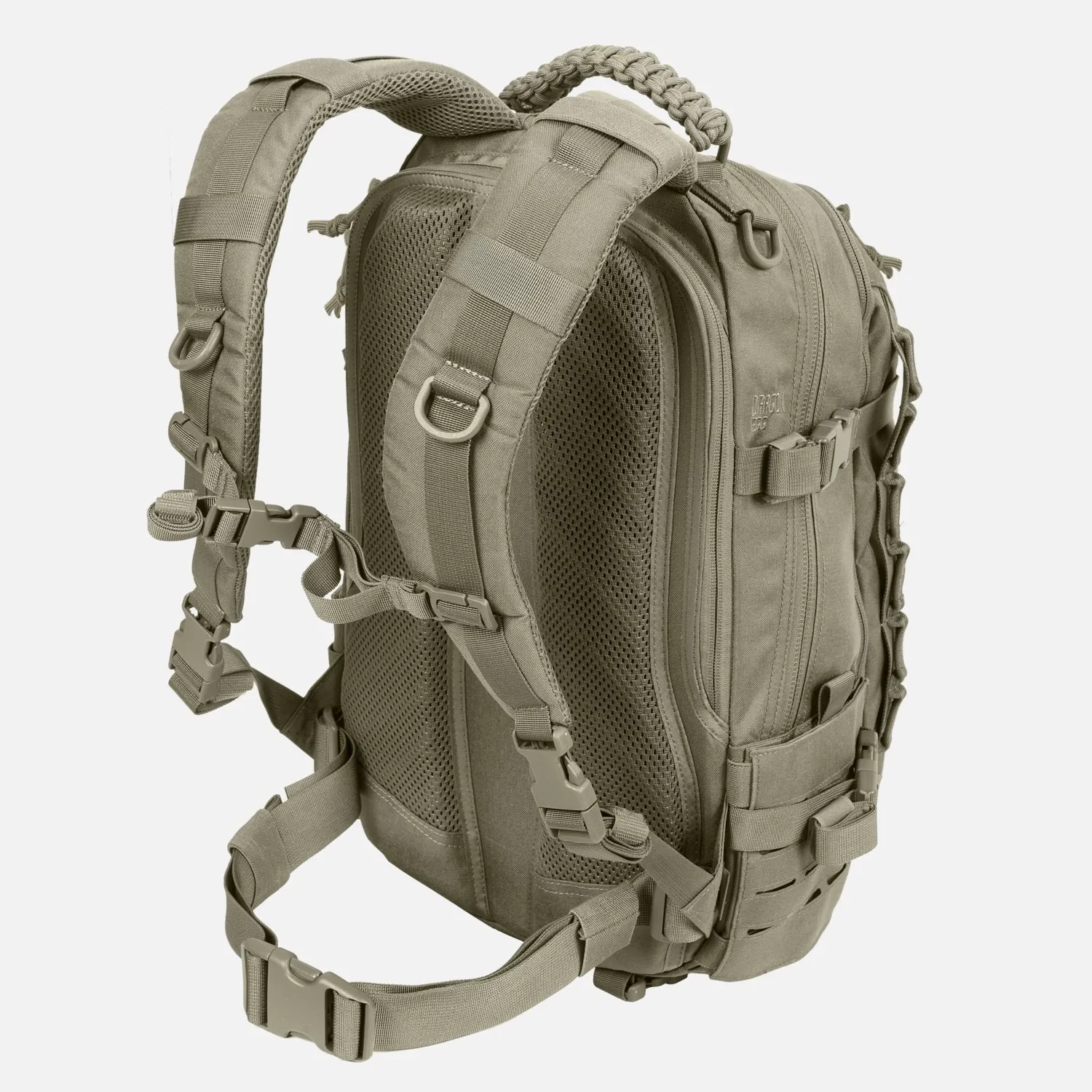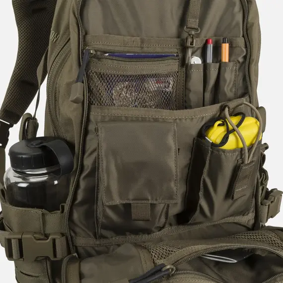 Система MOLLE/PALS с лазерной резкой позволяет дополнять рюкзак дополнительными модулями, не увеличивая его профиль. Спереди имеется перемычка в виде цепочки, которая используется для крепления карабинов, перчаток, жгутов и т.д. Боковые ручки для захвата и верхняя ручка из паракорда облегчают переноску и позволяют использовать шнур (2 × 2,5 м) в экстренных случаях. Быстросъемные плечевые ремни, съемный поясной ремень и усиленная поддержка спины повышают комфорт переноски даже при полной загрузке.