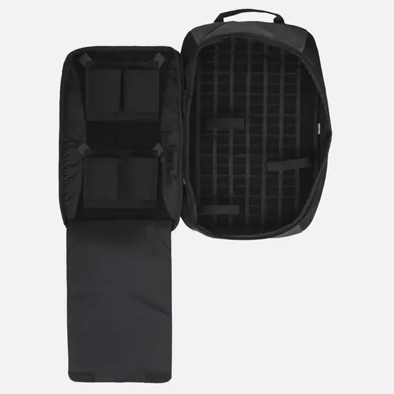 Внутреннее отделение отделано велюровой тканью для установки дополнительных подсумков. Задняя часть внутренней панели также покрыта лазерной резкой MOLLE/PALS, что позволяет переделать этот ранец в медицинский ранец, штурмовой ранец, ранец для взломщиков или даже в ранец для радиосвязи, используя внутренние точки крепления. В верхней части клапана расположены два кармана, один из которых обшит велюром. Наружный слой спинки покрыт лазерной резкой MOLLE/PALS.