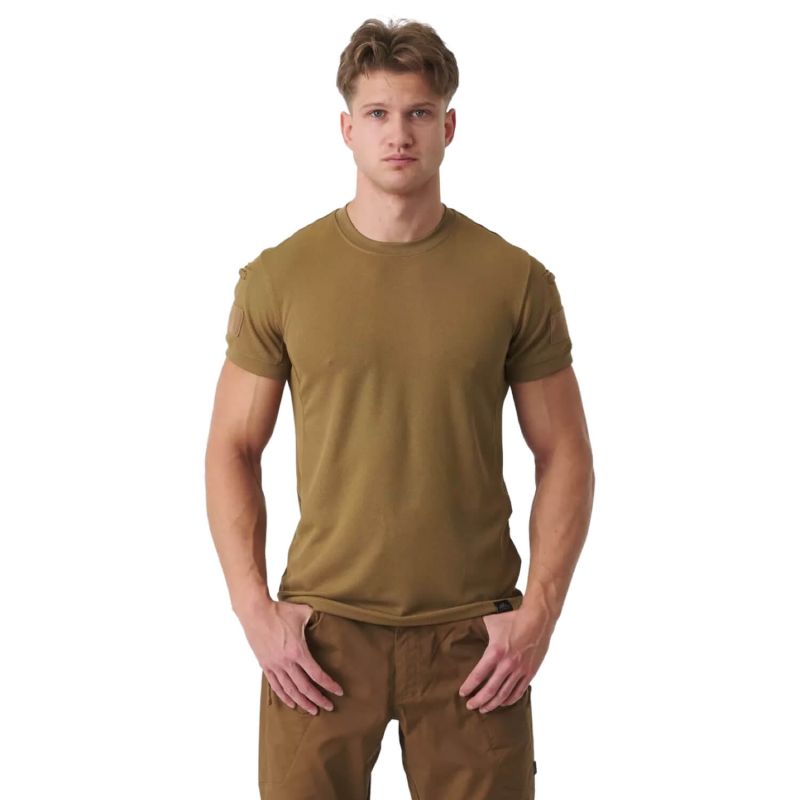 Тактическая футболка — это практичный вариант с короткими рукавами. Футболка изготовлена из быстросохнущей и приятной на ощупь ткани. Материал также отводит влагу — даже при сильном потоотделении. Она хорошо подходит как для занятий на свежем воздухе, так и для тренировок в помещении. Тактическая футболка сочетает в себе универсальный стиль и функциональность. Благодаря двум карманам на плечах и петлям вы можете носить с собой небольшие предметы, например очки. Чтобы персонализировать эту термоактивную футболку, прикрепите нашивку к панели с застёжкой-липучкой.