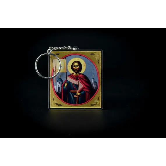 Брелок двухсторонний "икона Александр Невский" из оргстекла (акрила)